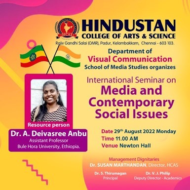 The PG course was established in the year 2021 with strength of 25 students. Master of Visual Communication is a long-term Post Graduate program subsidiary to University of Madras. It is separated into four semesters and every semester comprises of a well planned course structure that spotlights on different regions in the fields of Media. The Department follows the guideline of comprehensive development for hopeful media professionals levelling up their abilities across the scope of Media- Print, electronic and online. The department aims to bring out the abilities and openness, essential for progress in an exceptionally competitive media environment.