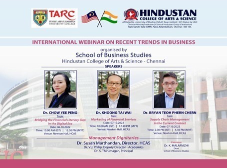Hindustan College of Arts & Science signed an International MoU on 19.01.2022 with Tunku Abdur Rahman University, Kualampur, Malaysia with the School of Business Studies