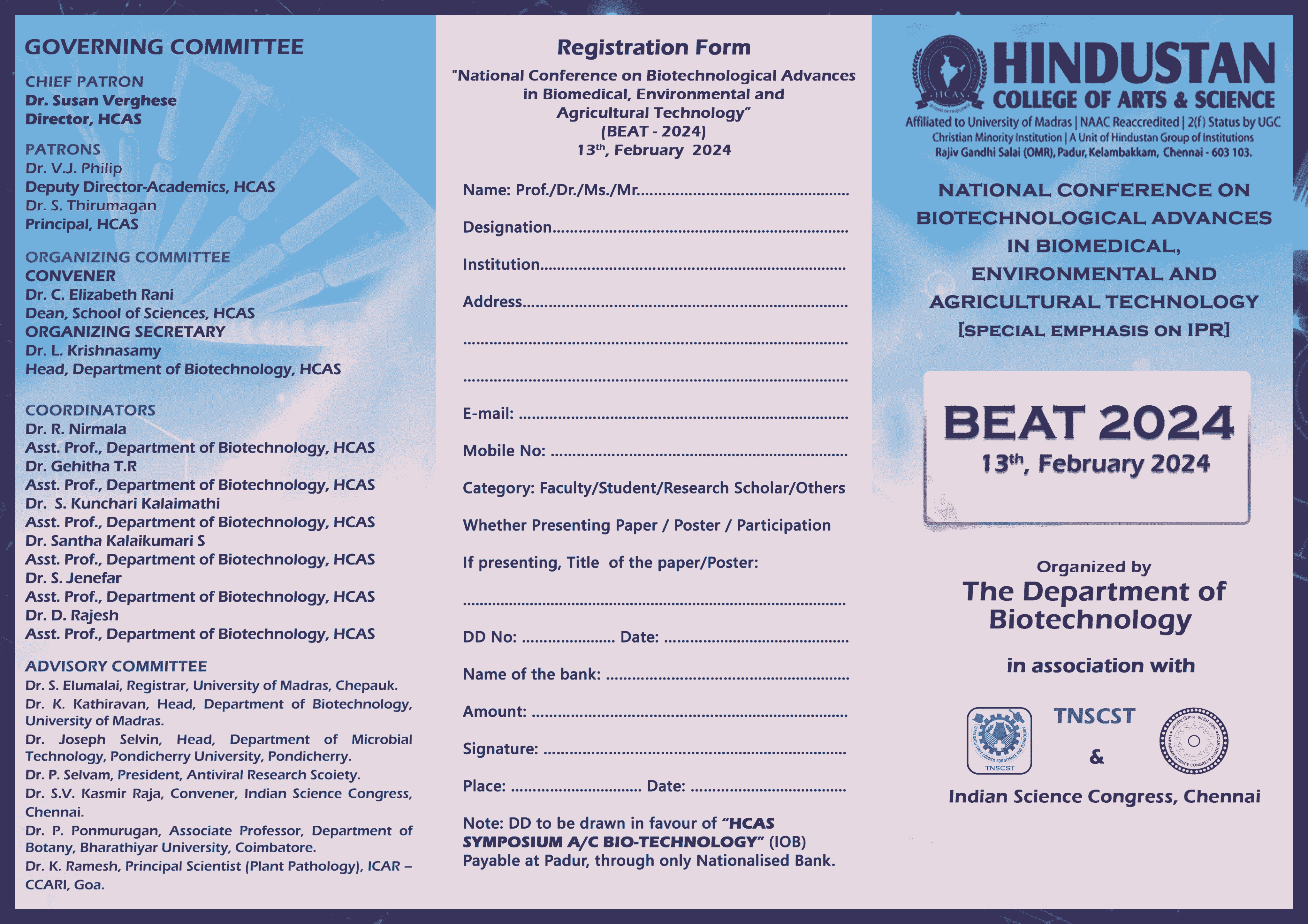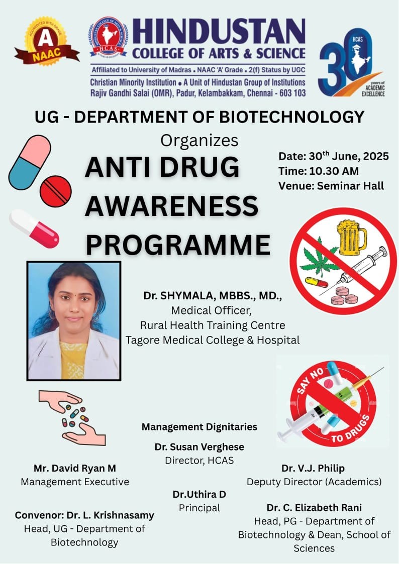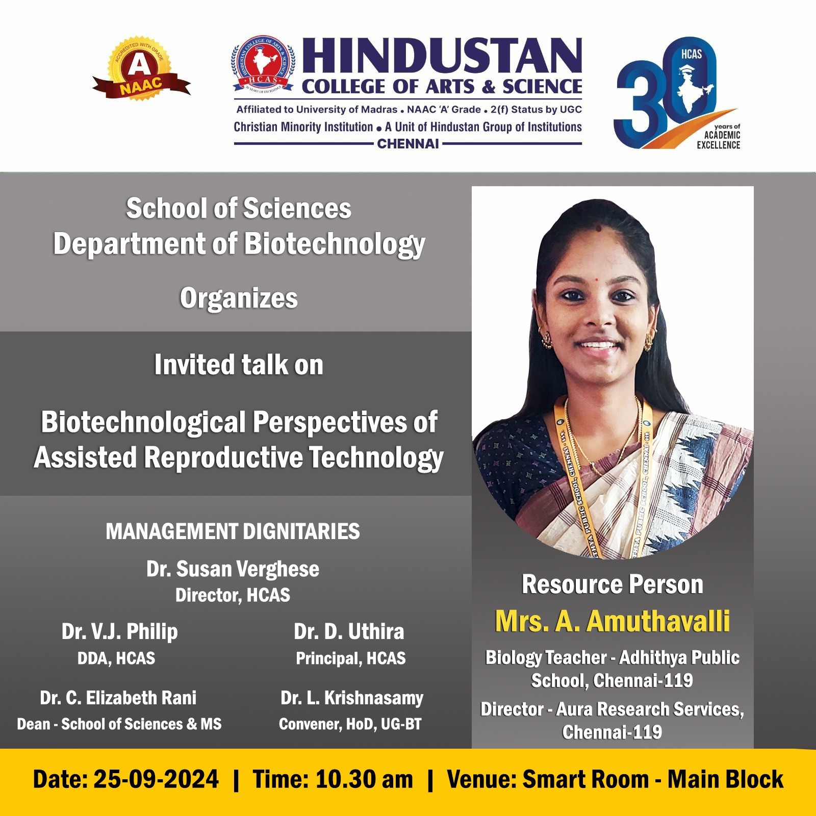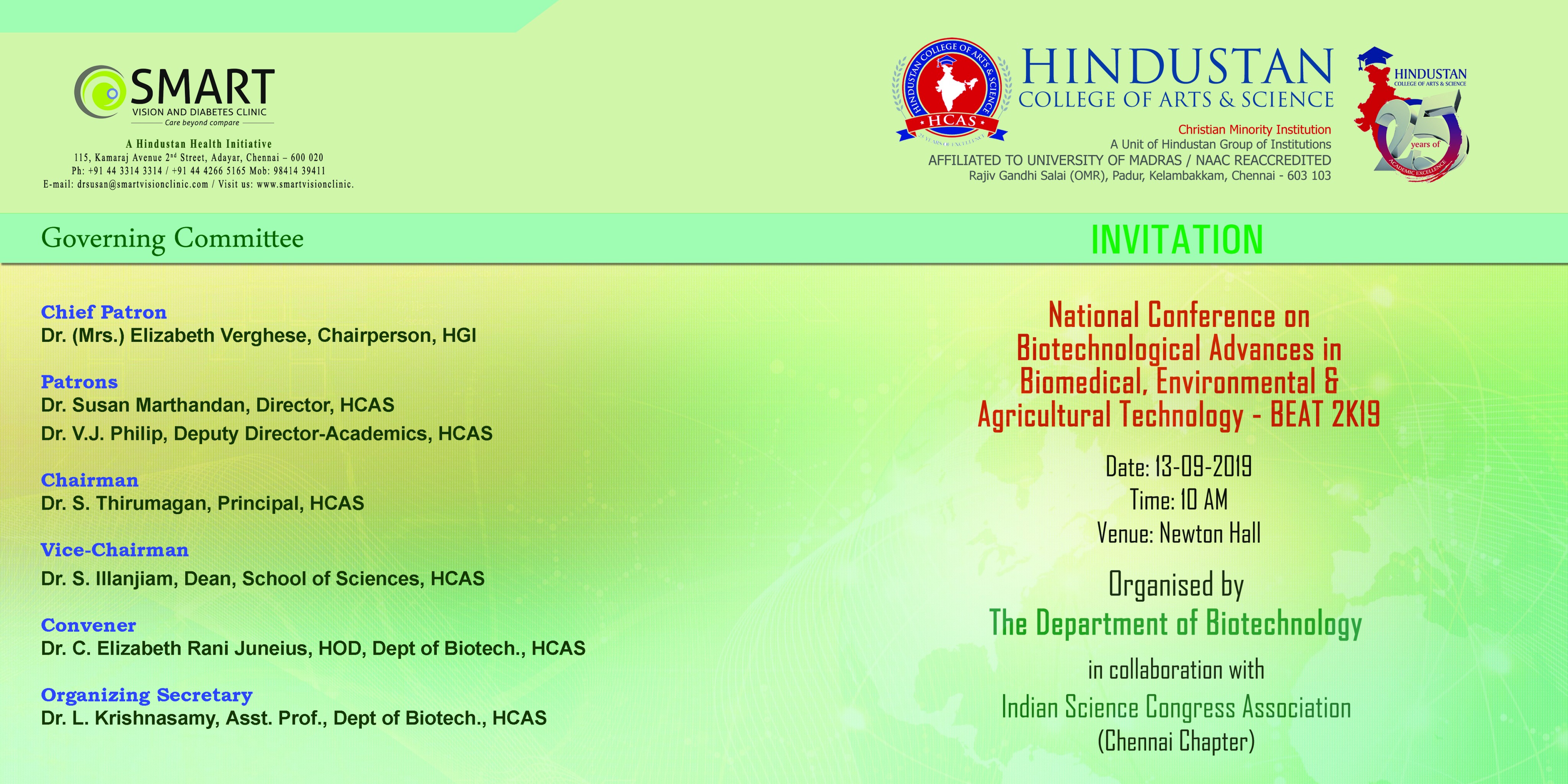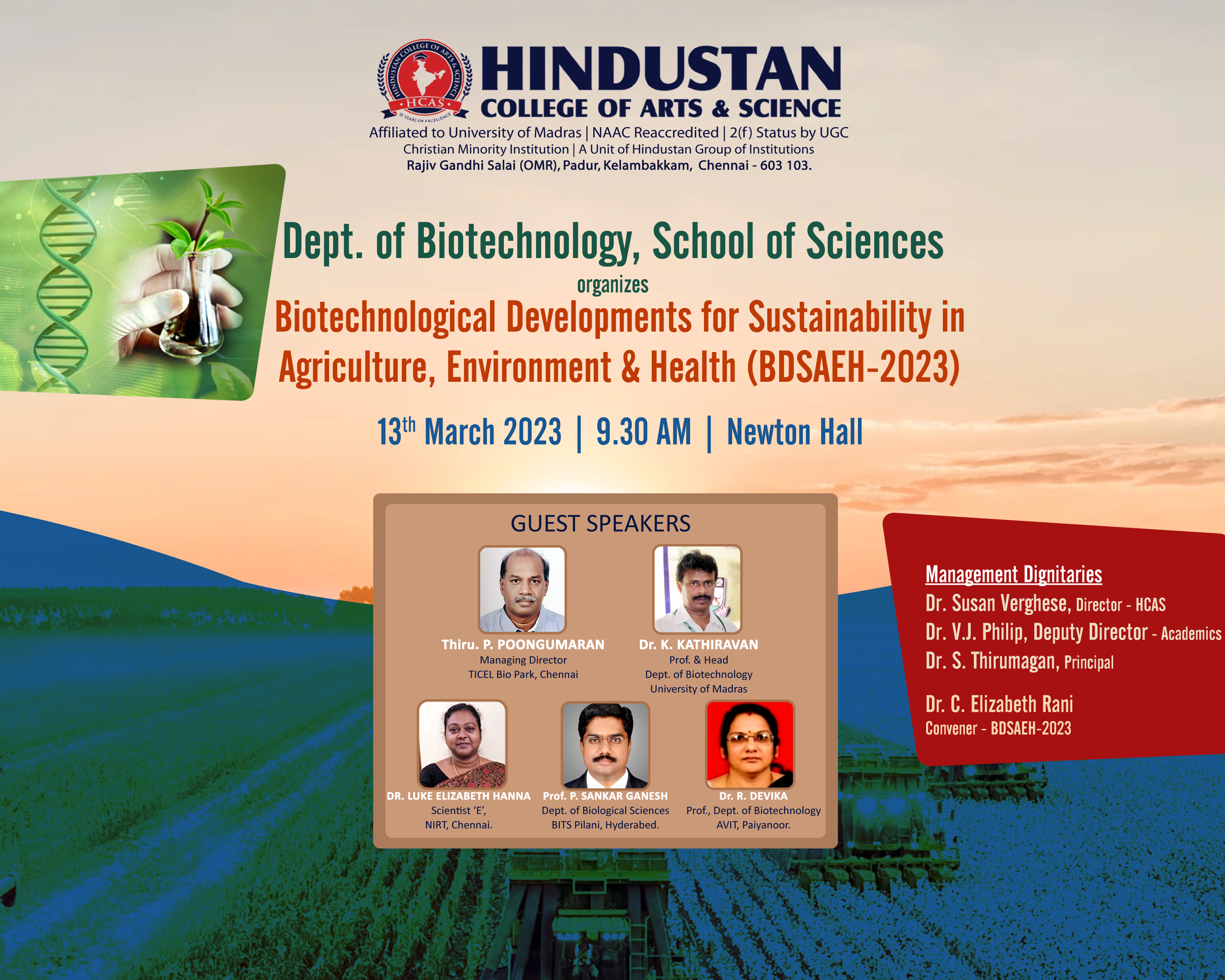 The course offered by HCAS is Biotechnology, which covers all the above branches of the subjects. The curriculum is designed and provided by the University of Madras, which covers all the above said branches. Biotechnology is an interdisciplinary science which encompasses areas viz. Molecular Biology, Genetics, Biochemistry, Microbiology, Virology, Plant and Animal Tissue Culture, Chemistry and Engineering. It is a fast emerging “cutting edge” science with distinctive advantages as it finds applications in practically all aspects of life. The subject offers exciting opportunities in various fields from basic research to an industry oriented career.