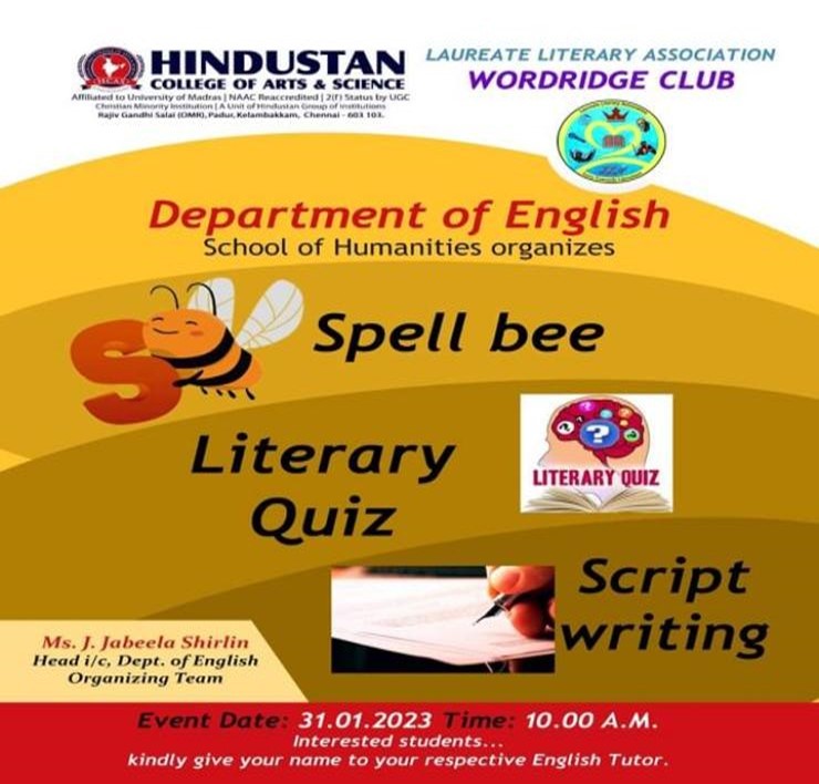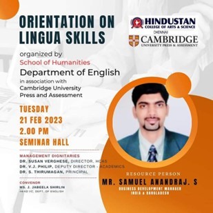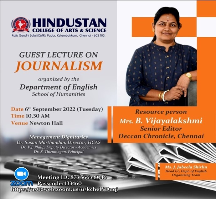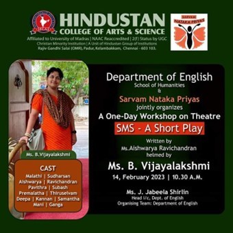An MoU was signed between TUNKU ABDUL RAHMAN UNIVERSITY COLLEGE,MALAYSIA and HINDUSTAN COLLEGE OF ARTS & SCIENCE, CHENNAI on 19th January 2022. Through this MoU, the department successfully conducted a webinar on Cultural Studies. The Department is looking forward to collaborate with them through staff exchange programme. Mr. Thilip Kumar Moorthy, Lecturer and Teaching Practicum Co-ordinator from Tunku Abdul Rahman University College, Malaysia visited our institution and addressed the students with his intellectual inputs. Subsequently, Mrs.J. Jabeela Shirlin, Head In-charge, Department of English visited TARUC, Malaysia for the same in the month of November.