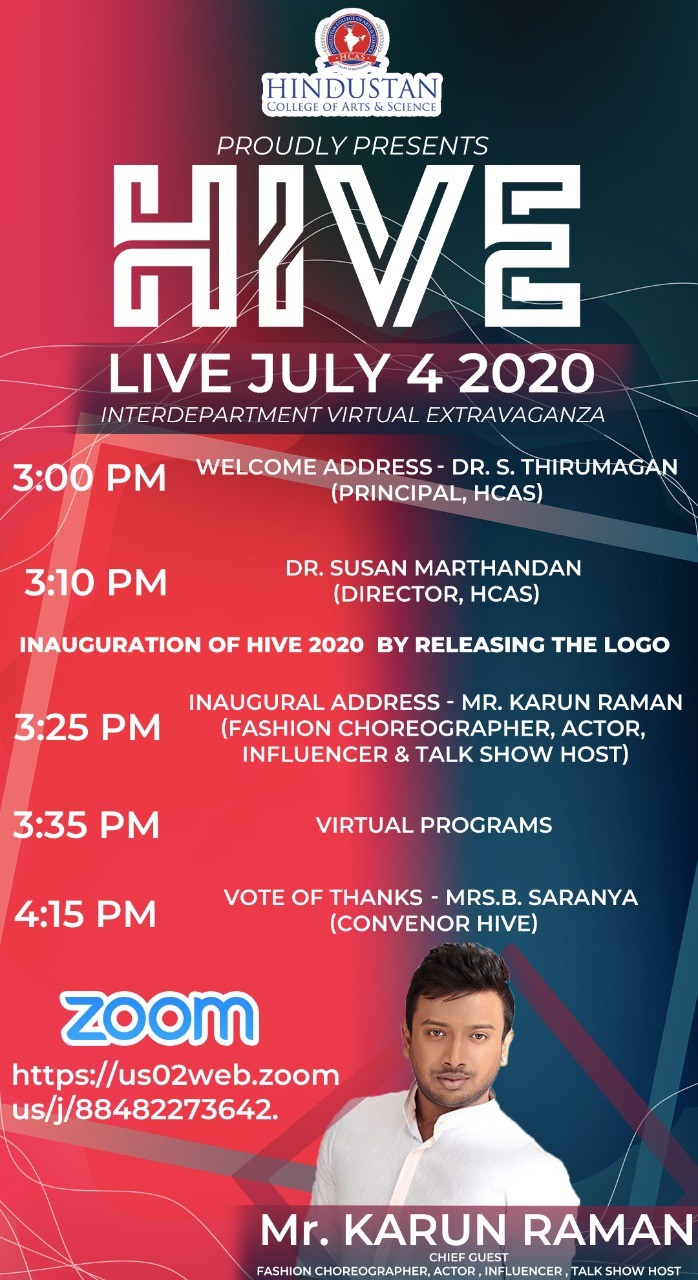It’s carnival time again at HCAS…let’s come together for a season of celebration & competitions at HCAS with our HIVE 2020  - AN INTER DEPARTMENTAL VIRTUAL EXTRAVAGANZA - Inter-departmental Online Cultural Competitions with various contests...