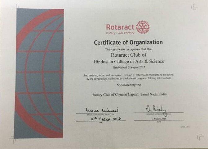 The Rotaract Club of HCAS was established on the 5th August, 2017.SPONSORED BY ROTARY CLUB OF CHENNAI CAPITAL RID – 3232